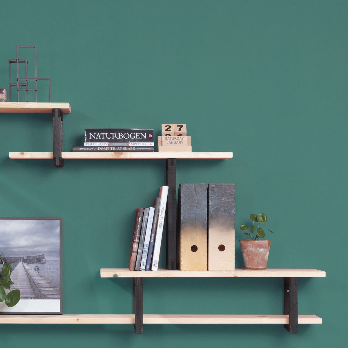 Anyway hylleknekt af massiv furu (beiset svart).