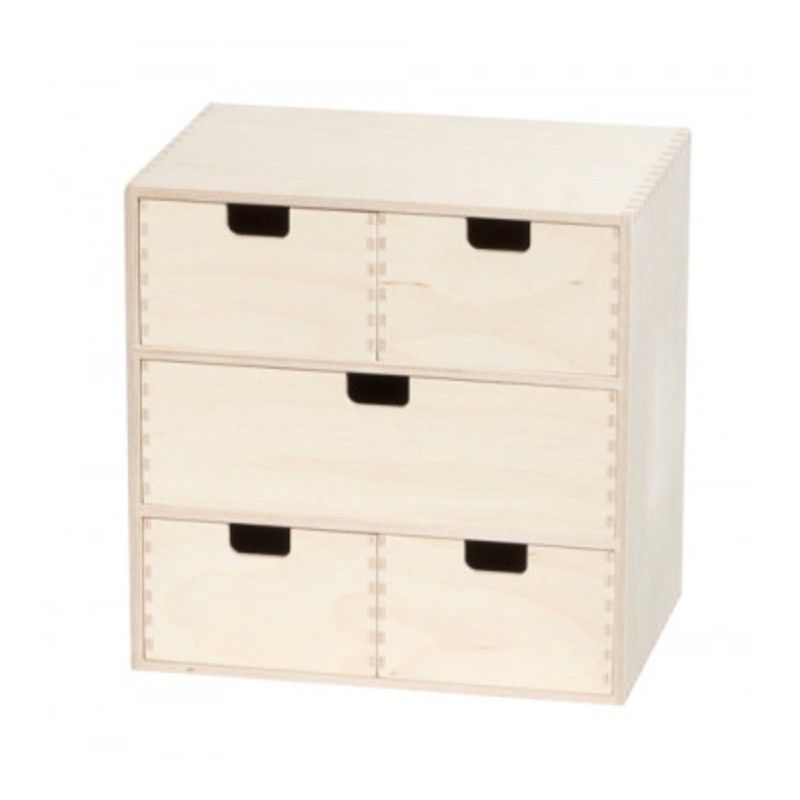 Minikommode i bjørkefiner - 5 skuffer (31x31x21 cm.)