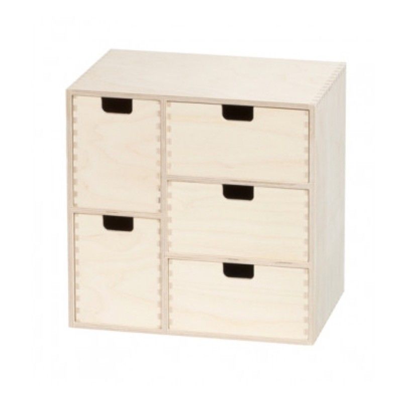 Minikommode i bjørkefiner med 5 skuffer (31x31x21 cm.)