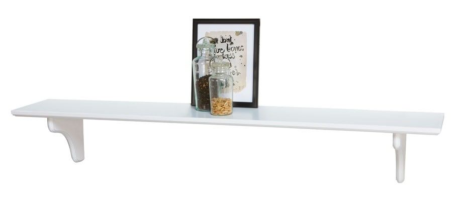 L120 D20 cm. Vegghylle i hvitmalt MDF. (inkl. 2 hylleknekte + festemidler). Maks belastning 15 kg. Finnes i forskjellige størrelser.