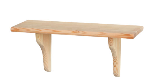 L40 D15 cm. Vegghylle av ubehandlet furu. (inkl. 2 hylleknekte + festemidler). Maks belastning 10 kg. Finnes i forskjellige størrelser.