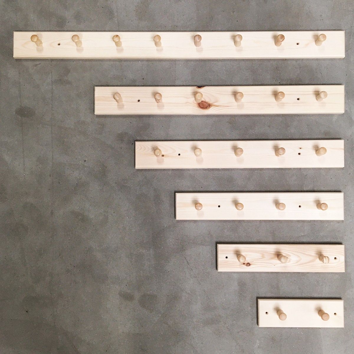 Knaggerekke med 8 knagger - furu