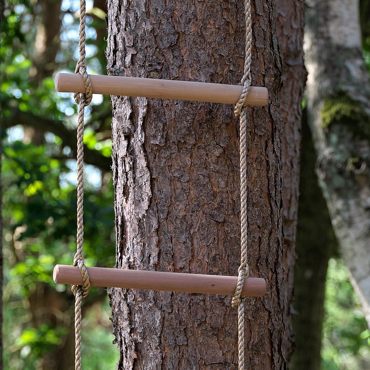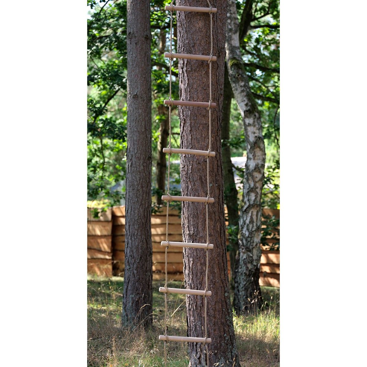 Vår tau-stige er testet for å kunne holde minst 100 kg, slik at du kan være trygg på barnas sikkerhet. Husk å gi tau-stigen passende trebeskyttelse en gang i året for å forlenge levetiden og sikre at gleden med tau-stigen varer i mange år.