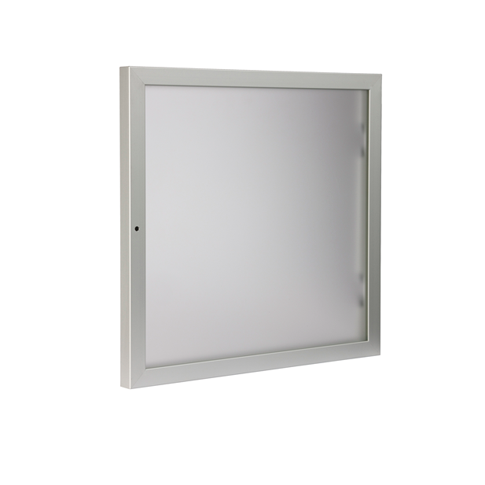 KUBIK color - lav glassdør med matt glass og aluminiumsramme, 35 x 35 cm med selvlukkende "snap softclose"-hengsler. Leveres uten knotthåndtak. Til montering på alle kasser, unntatt 4200 (70 x 70 med 2 gjennomgående hyller).