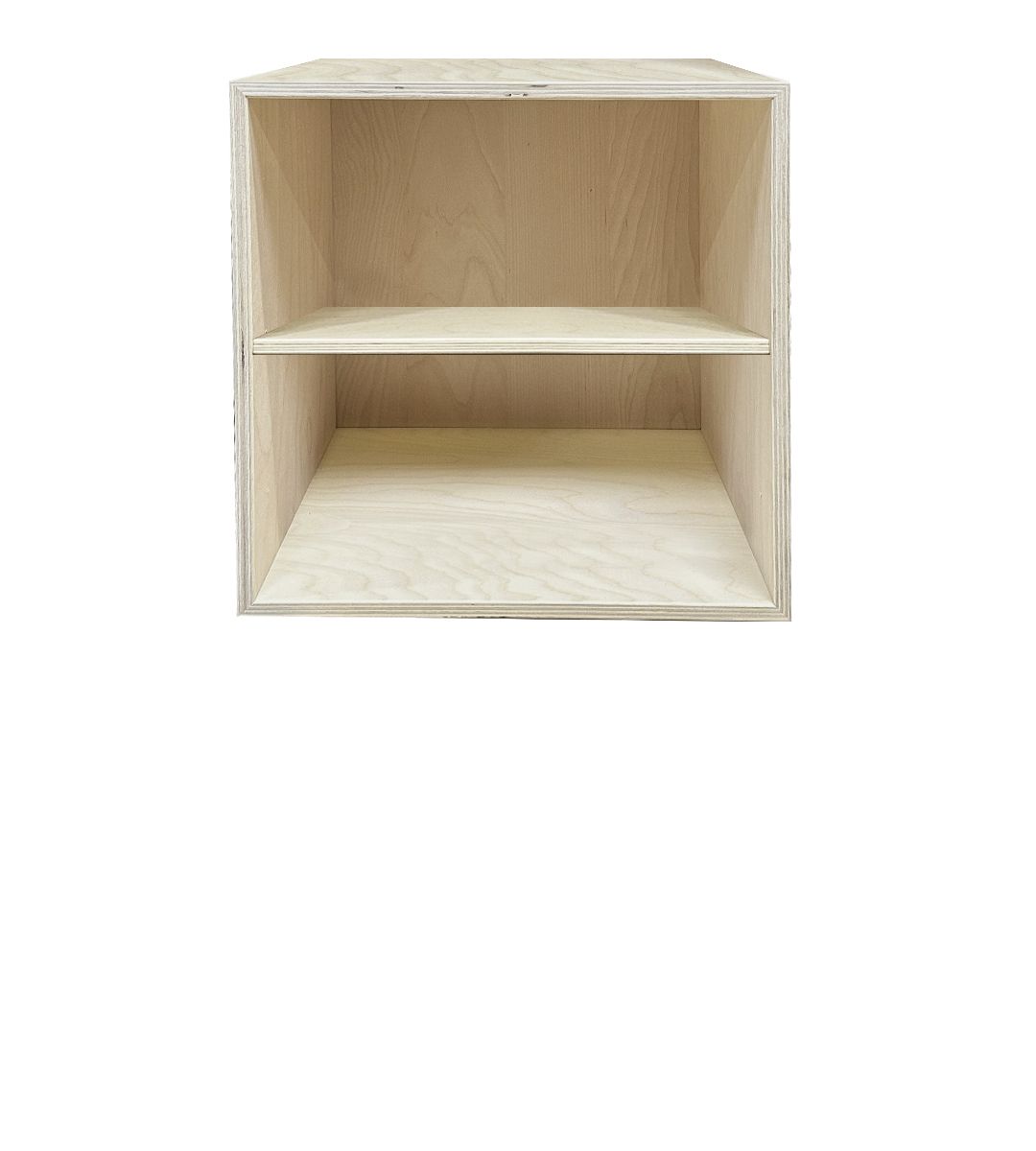 Denne bokkassen i bjørk er 35x35 cm og fås i 19, 32 og 40 cm dybde. Inneholder 2 rom.