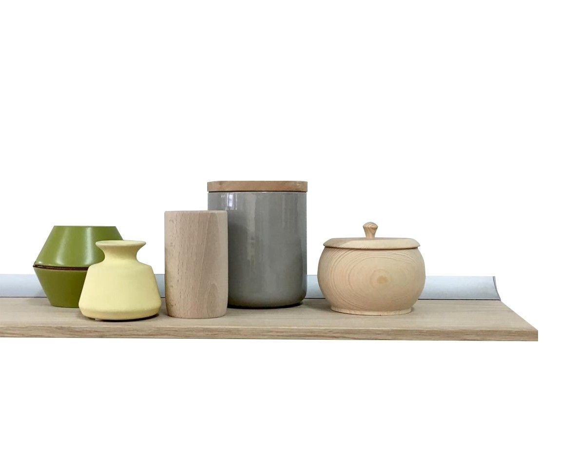 Kort vegghylle med aluminium opphengslist.
