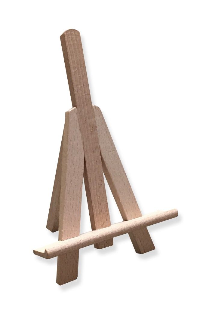 H15 B10 cm. Produceret i ubehandlet træ. Du kan bruge dette staffeli til små billeder, postkort, til din smartphone. Stil staffeliet på din KUBIK reol som en del af et stilleben.