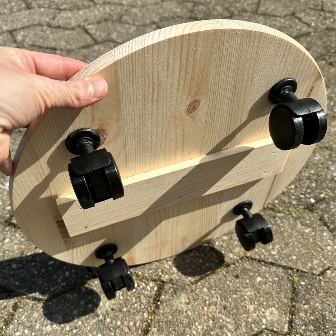 Hjulene gjør det enkelt å rulle plantevogna rundt