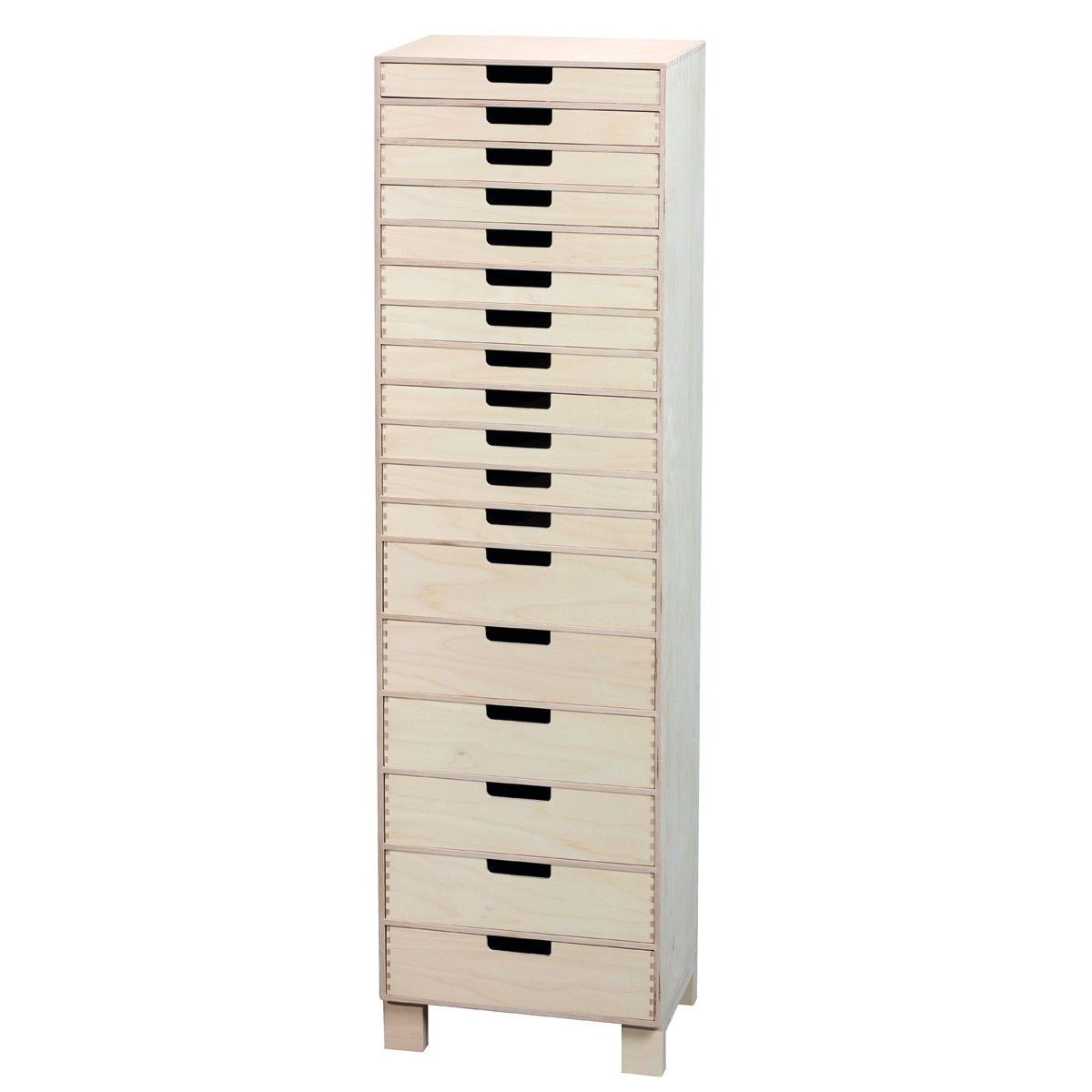 B35 H129 D25 cm. Smart skuffeseksjon med oppbevaringsrom i ubehandlet bjørkekryssfinér.