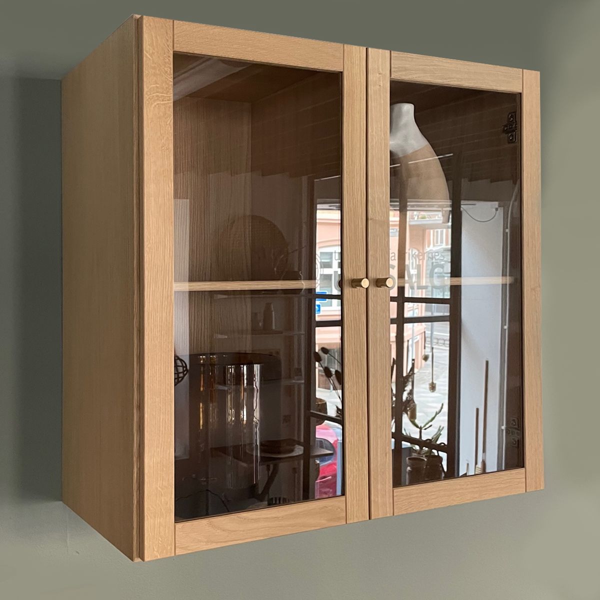 Vitrineskap i eik med glassdøren (70x70x32 cm.)